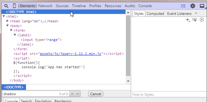 Мәтін енгізу жолағы және батырмалар секілді элементтерді браузерлер басқа жасырын элементтерден құрады. Сонда да сіз ол жасырын элементтерді көре аласыз. Ол үшін Settings->General бөлімінде Show user agent shadow DOM баптауын қосу қажет.